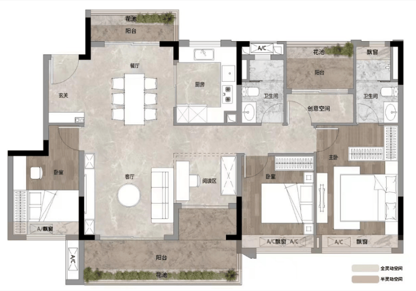 客堂可矫捷为6米大开间,空间宽敞,摆放沙发、茶几、电视柜后,还有脚够的空间打制休闲区、儿童逛乐区,日常平凡家人、伴侣来访,都不会显得拥堵;从卧面积近30㎡,自带卫生间和衣帽间,私密性强,空间宽敞,摆放一张大床、衣柜、打扮台、休闲桌椅,也不会显得拥堵,给仆人脚够的私密空间和舒服体验;别的四个房间大小适中,可矫捷为儿童房、白叟房、书房、客房,满脚分歧的栖身需求,无论是三代同堂,仍是多后代家庭,都能住得宽敞、舒服。