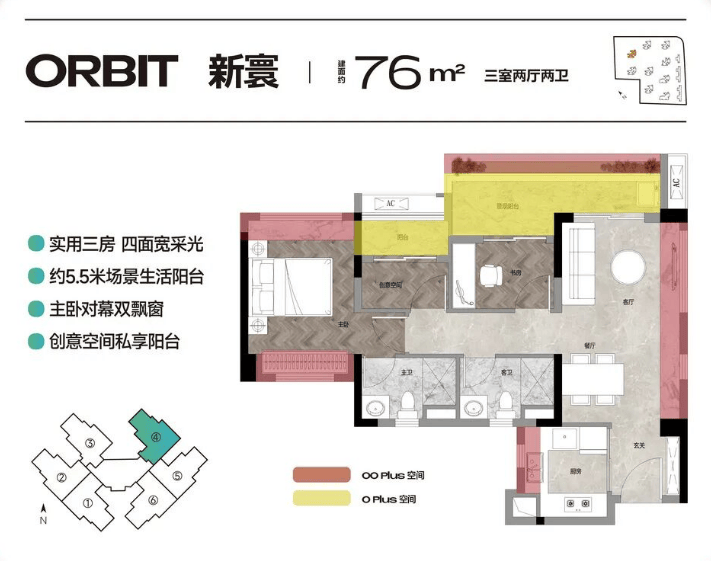 若是是三口之家,对空间的需求会稍微高一些,既需要脚够的栖身空间,又要兼顾适用性和舒服性,保利珑玥第宅的76㎡三房两卫户型,就很是适合三口之家栖身,和74㎡户型设想附近,同样具备高适用率特点,并且部门房源叠加赠送面积后,适用率可达95%(数据来历:项目户型测算演讲),空间操纵率超卓,每一寸空间都能获得充实操纵,不消华侈一丝一毫。