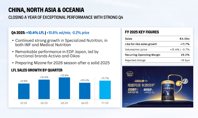 对于这份财报,透正在题为《达能对2026年充满决心,中国市场鞭策其2025年发卖额超出预期》的文章中指出,达能的业绩反映了中国对医学养分品和婴儿食物的持续需求,这正在很大程度上抵消了美国合作激烈的咖啡伴侣市场的疲软。